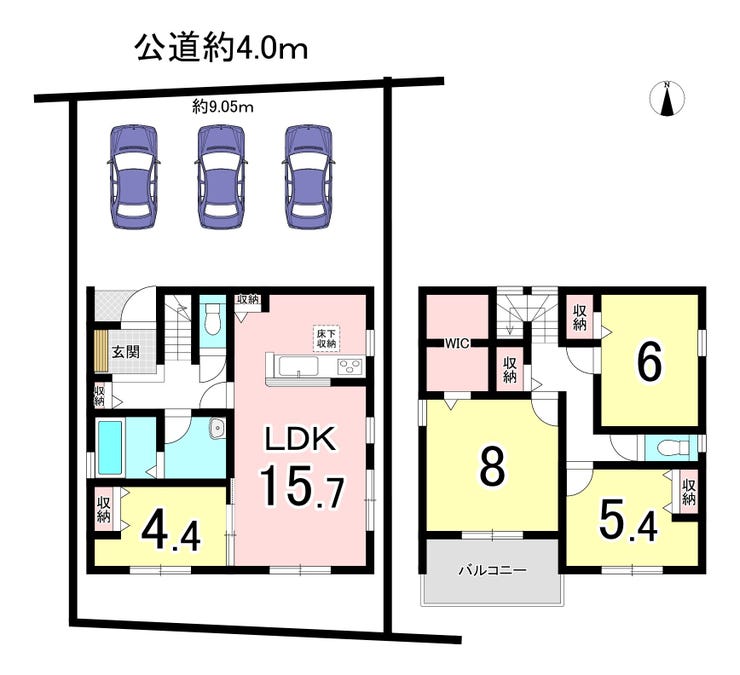 | 土地面積 | 158.01㎡(47.79坪) | 接道 | 北側(公道)幅 約4.0m 間口 約9.05m |